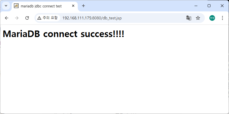 - Tomcat과 MariaDB가 잘 연동되었는지 확인하기 위해 테스트용 db_test.jsp 작성