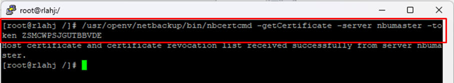# /usr/openv/netbackup/bin/nbcertcmd -getCertificate -server nbumaster -token [ copy한 토큰값 ]
