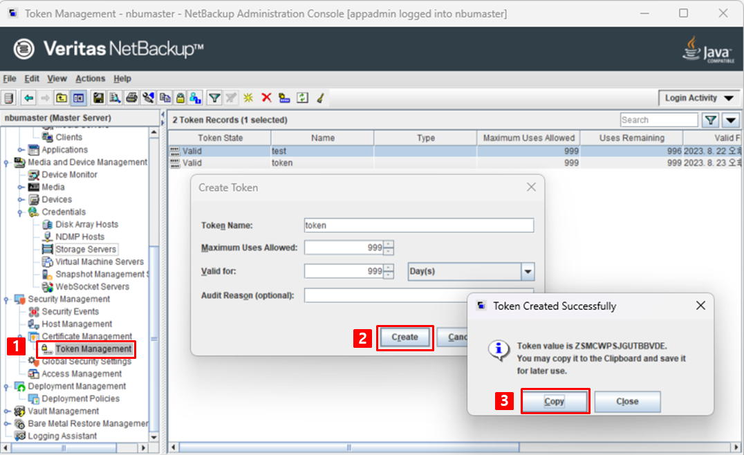 - 토큰 생성 및 발급은 Master 서버의 Java Console에서 가능함